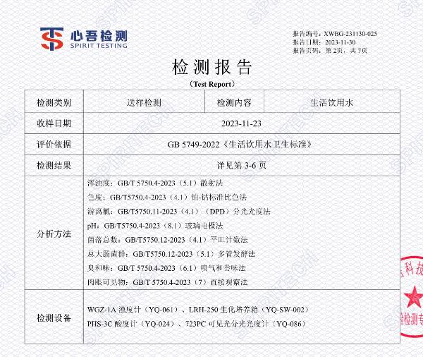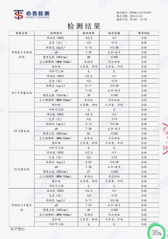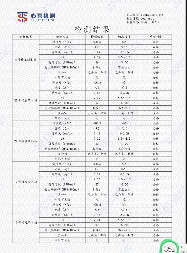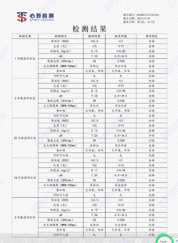 二次供水水质检测有新的规定